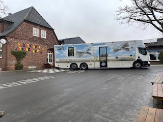 Der Bücherbus der Fahrbücherei hält jetzt auch alle 4 Wochen bei uns direkt auf dem Schulhof und ermöglicht so einfachere Besuche durch die Schulklassen. Allen Kindern mit Leseausweis wird in einer Pause unter Aufsicht einer Lehrkraft der Büchertausch unabhängig vom Klassenbesuch ermöglicht. (Genauere Angaben siehe Terminliste)